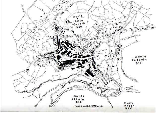 PIANTA DI ALLUMIERE 1850 IN NERETTO LE ABITAZIONI ESISTENTI